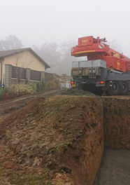V ceně sklepa je zahrnut i dovoz po celém území ČR kamionem s návěsem. V případě, že se kamion nedostane až k výkopu je nutné si sjednat s místním dopravcem přeložení na jiný automobil, nejlépe s pohonem 8x4. Vzhledem k faktu, že sklep váží podle konfigurace 12-14t, je podmínkou usazení do výkopu standardní dojezd nákladního vozidla s pohonem 8x4 až k místu instalace (nejdále 2m od výkopu zadní částí vozu) a připravený prostor pro jeřáb (obvykle 40-50t), tak aby byl střed otoče věže nejdále 3 m od konce event. boku vozidla. V této věci poskytujeme konzultační služby.
