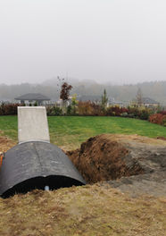 Sklep se instaluje do výkopu, který je o 40 cm větší na všech stranách než je půdorys, sklep se ukládá na zpevněný a srovnaný terén, tzn. na 10-15 cm hutněného štěrku frakce 0-16, popřípadě suchého betonu. Následný obsyp se realizuje vykopanou zeminou, která neobsahuje ostré kameny, pokud by zemina obsahovala ostré kameny, je nutno utvořit mezi stěnou sklepa a zeminou 20cm dilatační spáru vyplněnou štěrkem opět o velikosti 0-16mm. V případě modelů se schodištěm doporučujeme provést výkop se sklonem pod schodištěm, tak aby se schodiště při instalaci opřelo o rostlou zem, případnou vzniklou spáru je nutno co nejdříve zasypat a zhutnit štěrkem popř. suchým betonem, tak aby došlo k opření schodiště spodní a boční stranou o terén. Doba instalace je přibližně mezi 1-1,5 hod.